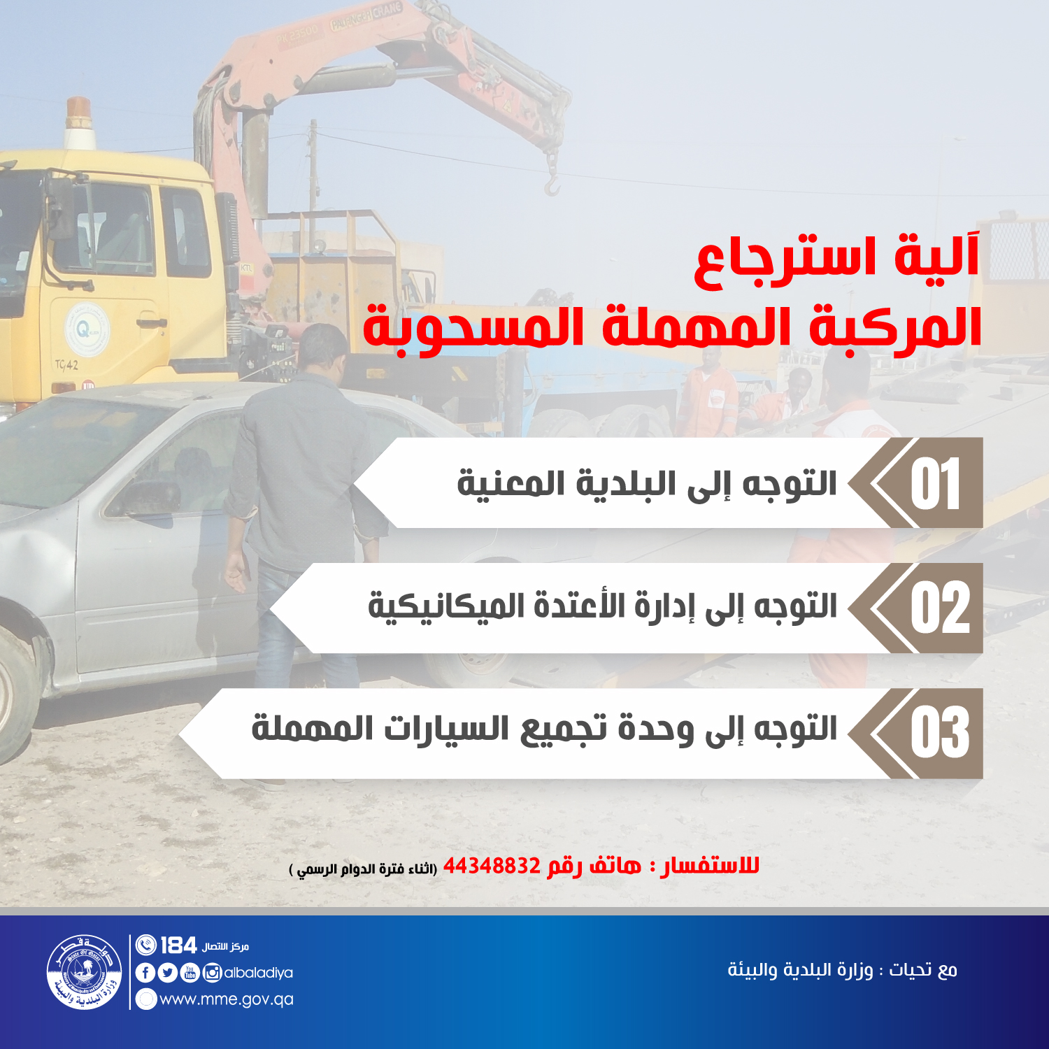 وزارة البلدية والبيئة Mme على تويتر كيف يمكن استرجاع المركبة المهملة المسحوبة البلدية والبيئة قطر Qatar
