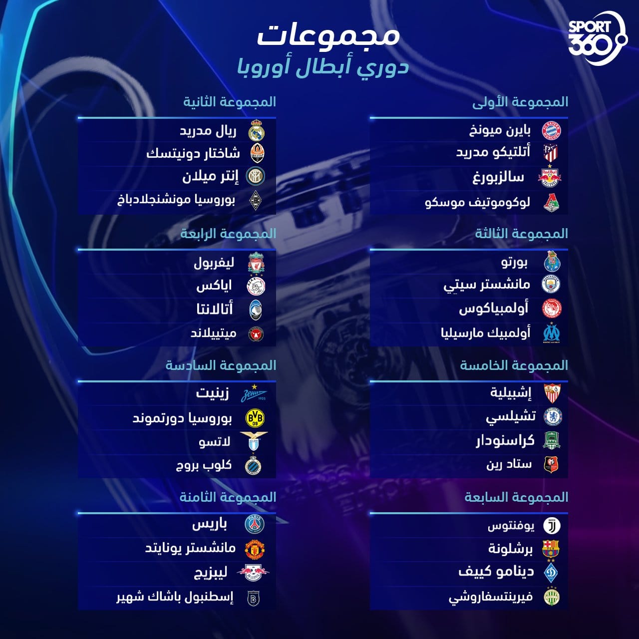 موعد قرعة دوري أبطال أوروبا 2021 دور المجموعات والقنوات الناقلة سبورت 360
