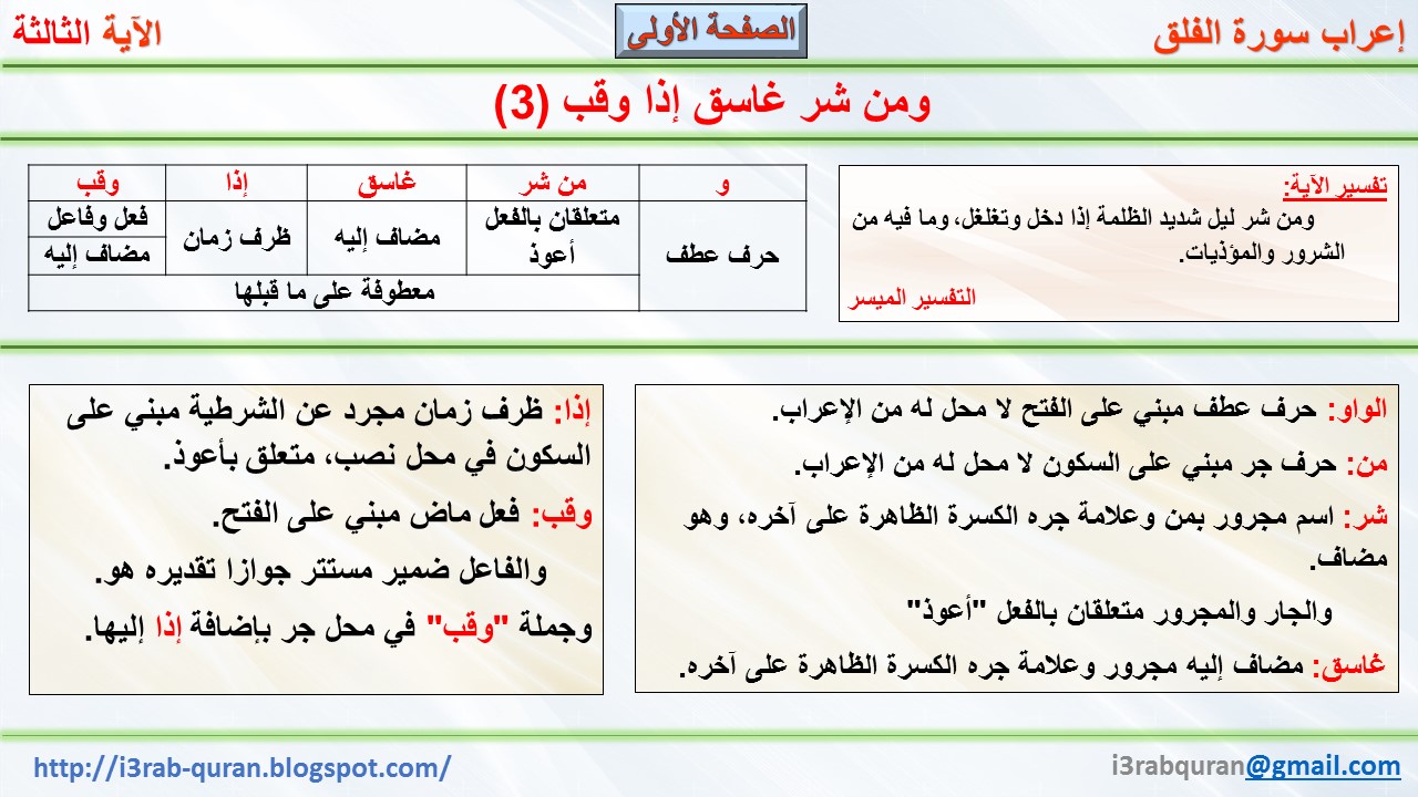 تفسير واعراب سورة الفلق الاية 3 الجزء الثلاثون مدونة طارق شهاب