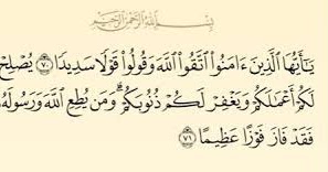 يا أيها الذين آمنوا اتقوا الله وقولوا قولا سديدا يصلح